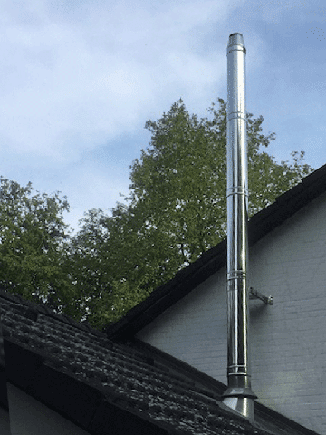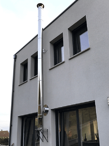 Stainless steel chimney in a new building